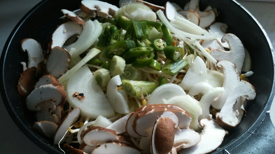 콩나물, 양파, 버섯(난 표고버섯으로), 대파, 고추 and...